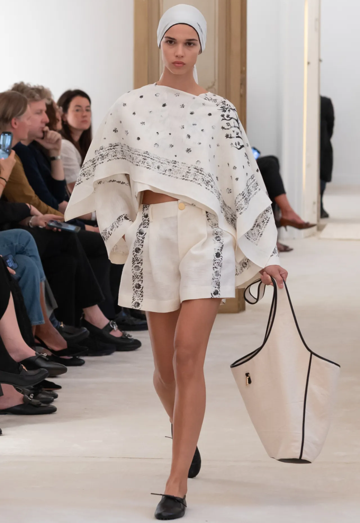 Linda Fargo brings timeless sophistication to Paris Fashion Week in a refined red, white, and black ensemble that captures the essence of minimalist elegance and confident style.